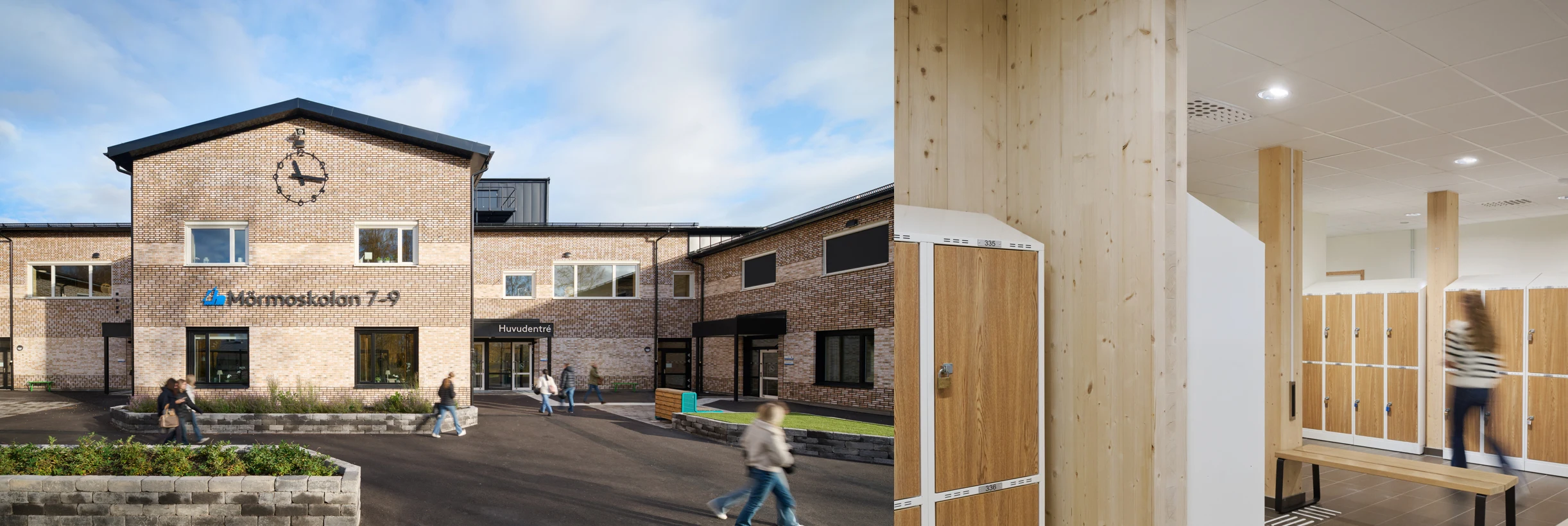 Den nye Mörmoskolan, som er oppført av ByggDialog, åpnet dørene ved semesterstart i august 2024. Martinsons har bidratt i byggeprosessen med sin verdiskapende kompetanse på bærekonstruksjoner i tre, hele veien fra utvikling til montering.