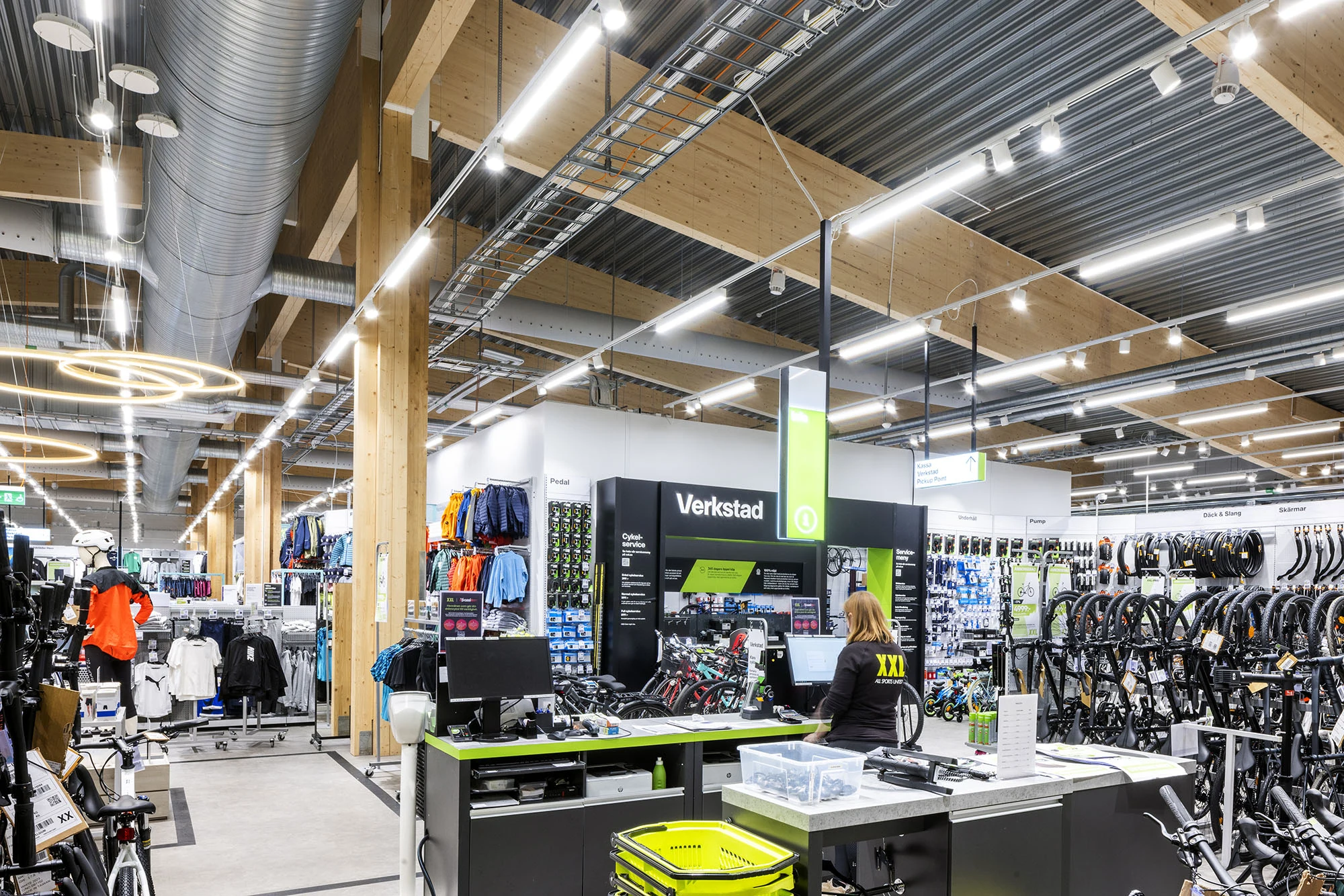 Bærekonstruksjoner i limtre fra Martinsons passer utmerket til forretningslokaler og gir stor fleksibilitet når det gjelder å endre lokalenes arealinndeling ved behov. Ved å bygge de indre bærende delene med limtrebjelker i stedet for vegger kan man tilpasse bærekonstruksjonen etter lokalenes bruksområde. De store, åpne arealene med minimalt antall søyler skaper forretningslokaler som er hyggelige både å jobbe i og besøke som kunde. Martinsons har mange års erfaring med store forretningslokaler og kan bidra med både rådgivning og byggekompetanse.