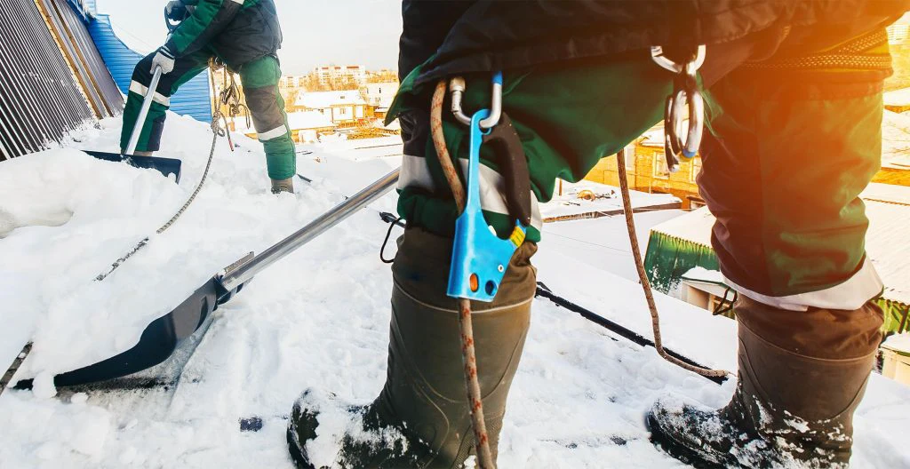 Anlita professionella snöröjare. De vet hur ett tak ska skottas för att klara konstruktionen och undvika olyckor.